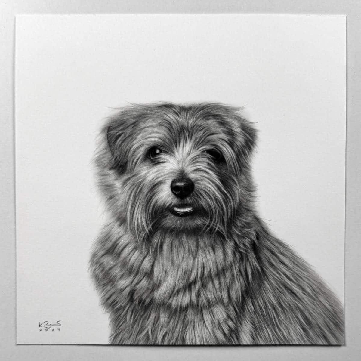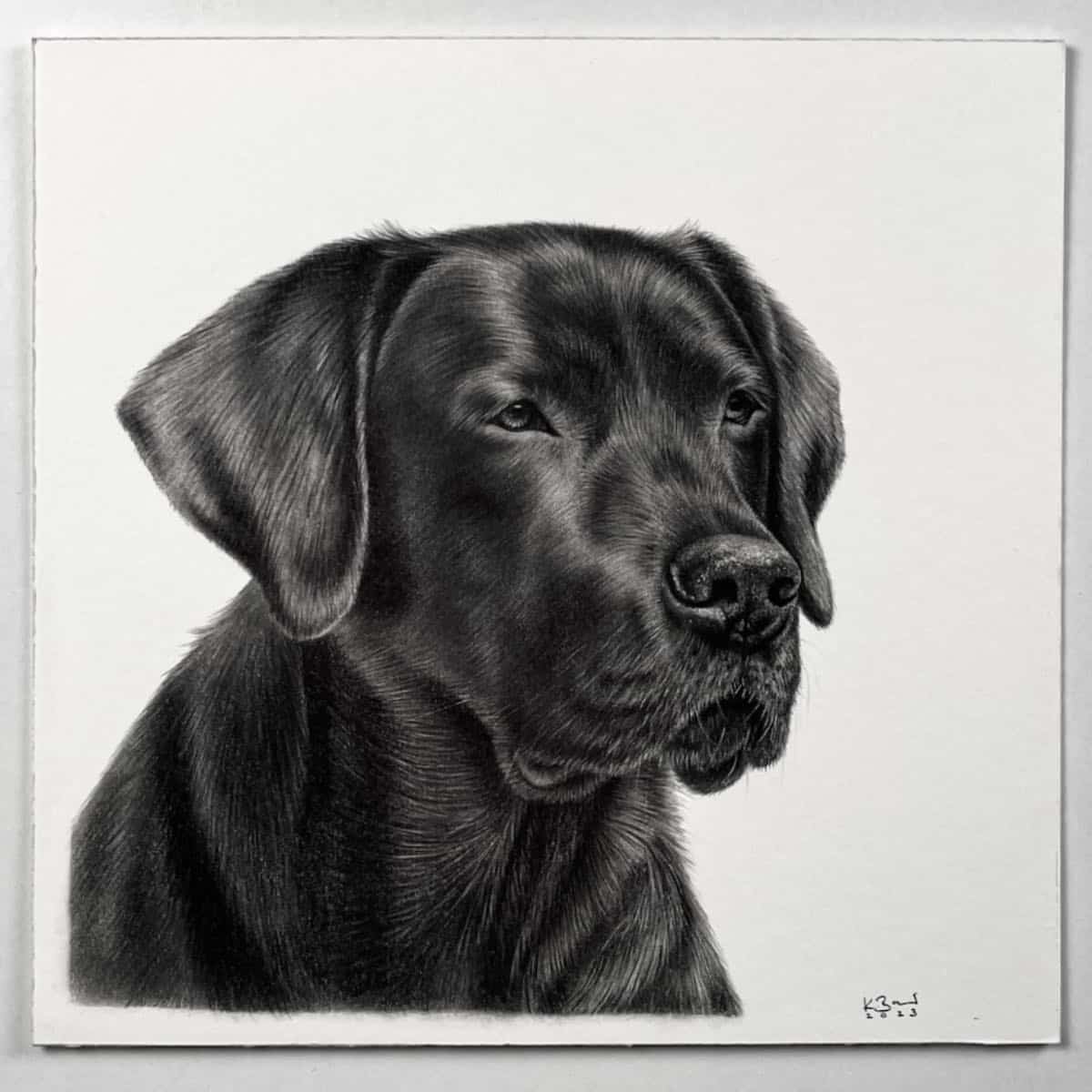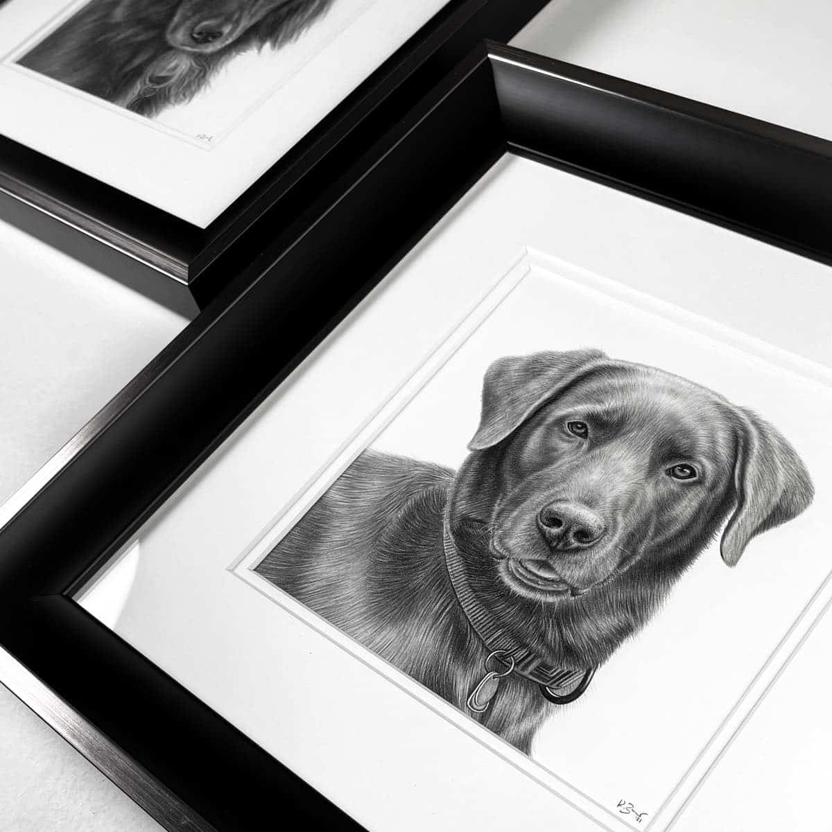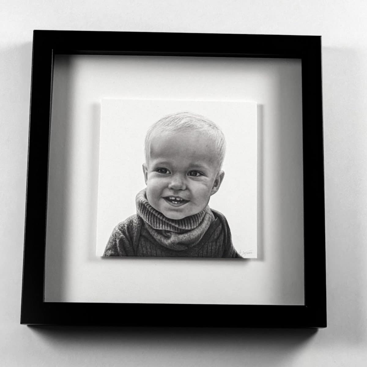 Die 15 x 15 cm Bleistiftzeichnung wird wahlweise mit einem weißen oder schwarzen Rahmen komplementiert. Das Außenformat mit Rahmen beträgt 28 x 28 cm.